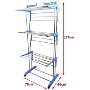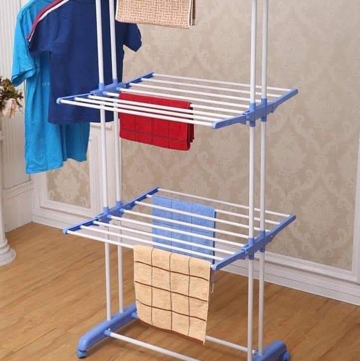 يأتي منشر غسيل عمودي مزود بثلاث طبقات مع علاقتين جانبيتين لتعليق الملابس، مما يسمح لك بنشر المزيد من الملابس في نفس الوقت. تصميمه العمودي الذكي يوفر أقصى مساحة ممكنة لتجفيف الملابس، مع إمكانية فرده أو طيه حسب الحاجة، مما يجعله عمليًا جدًا سواء للإستخدام اليومي أو عند السفر. الهيكل المعدني القوي يضمن ثبات المنشر حتى عند وضع الملابس الثقيلة، بينما تصميمه القابل للطي يسهل تخزينه بسهولة عندما لا يكون قيد الإستخدام.
